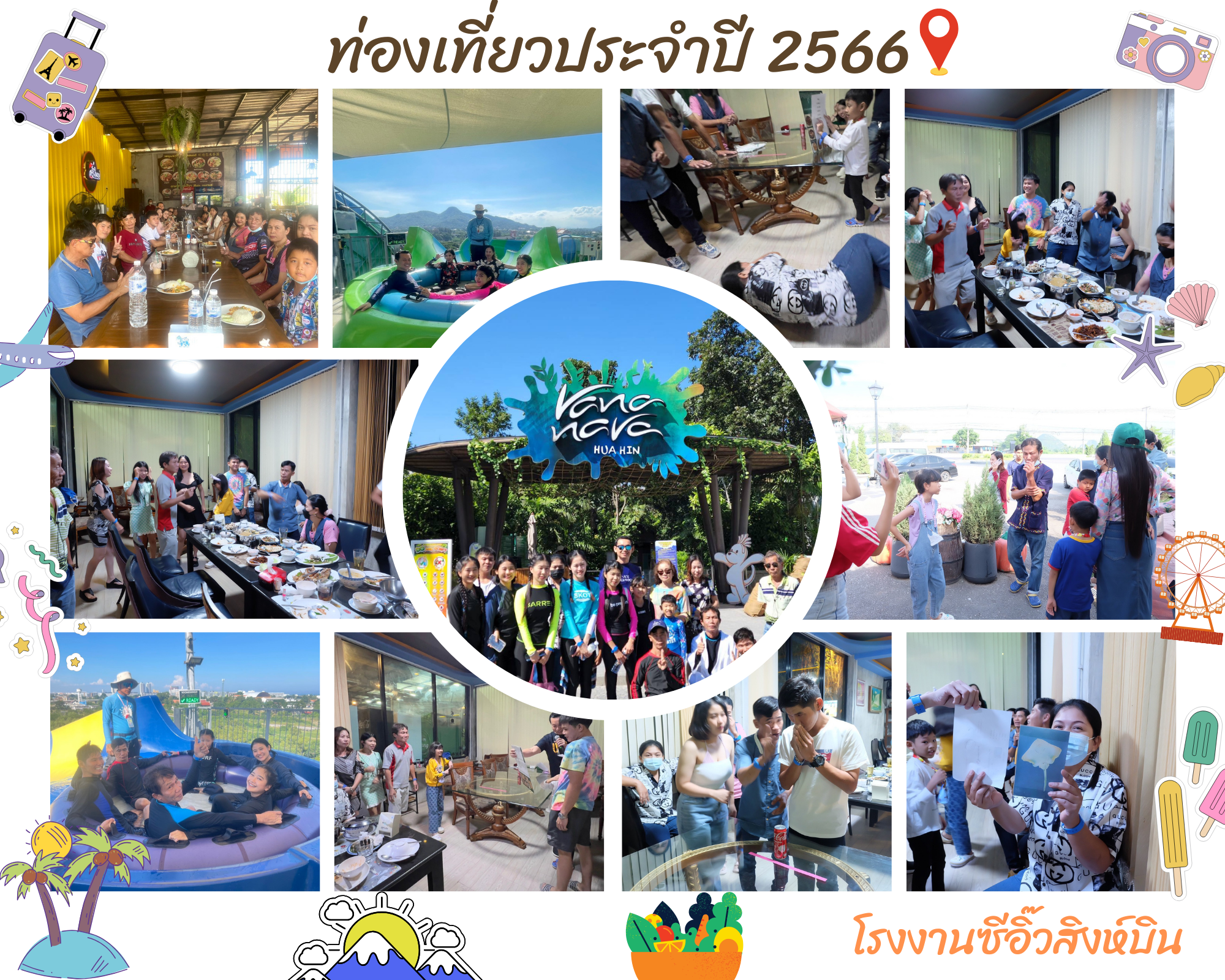 ทางโรงงานซีอิ๊วสิงห์บินได้นำพนักงานมาท่องเที่ยวประจำปี ที่หัวหิน จังหวัดประจวบคีรีขันธ์ เล่นสวนน้ำ ไหว้พระ และกินเลี้ยงสังสรรค์